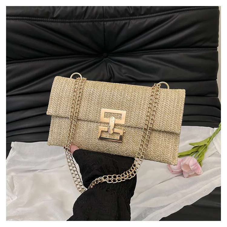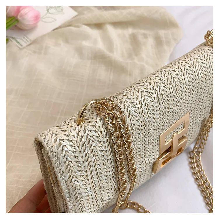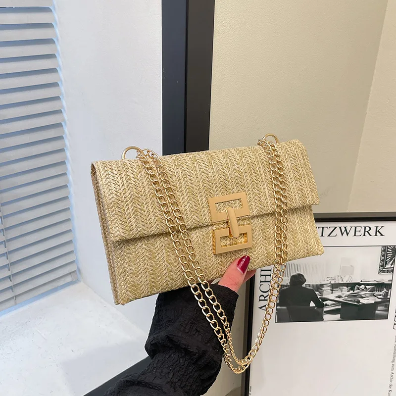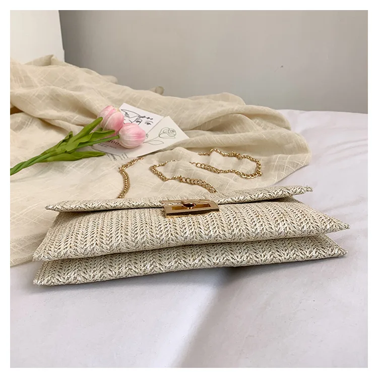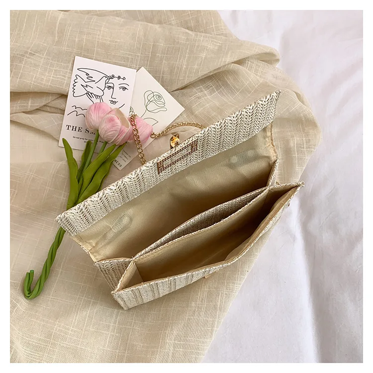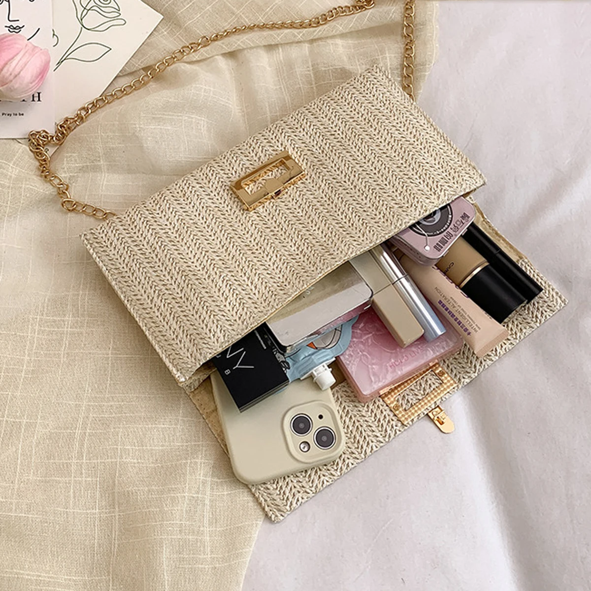 حقيبة يد نسائية منسوجة من العشب، محفظة متنقلة، حقيبة يد على الطراز البوهيمي للشاطئ الصيفي، محفظة منسوجة، ضرورية للفتيات في عطلة