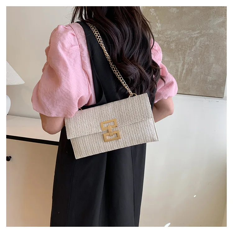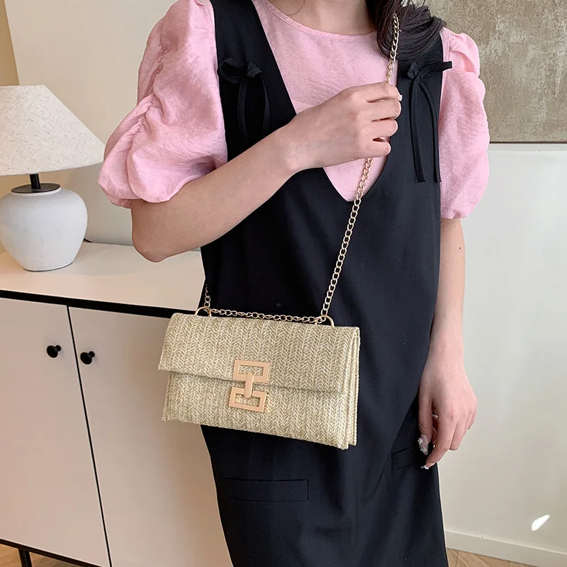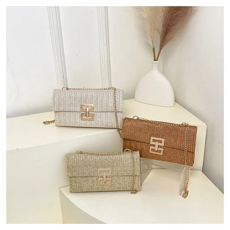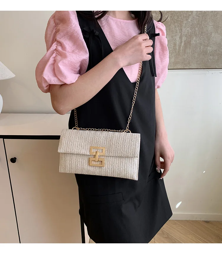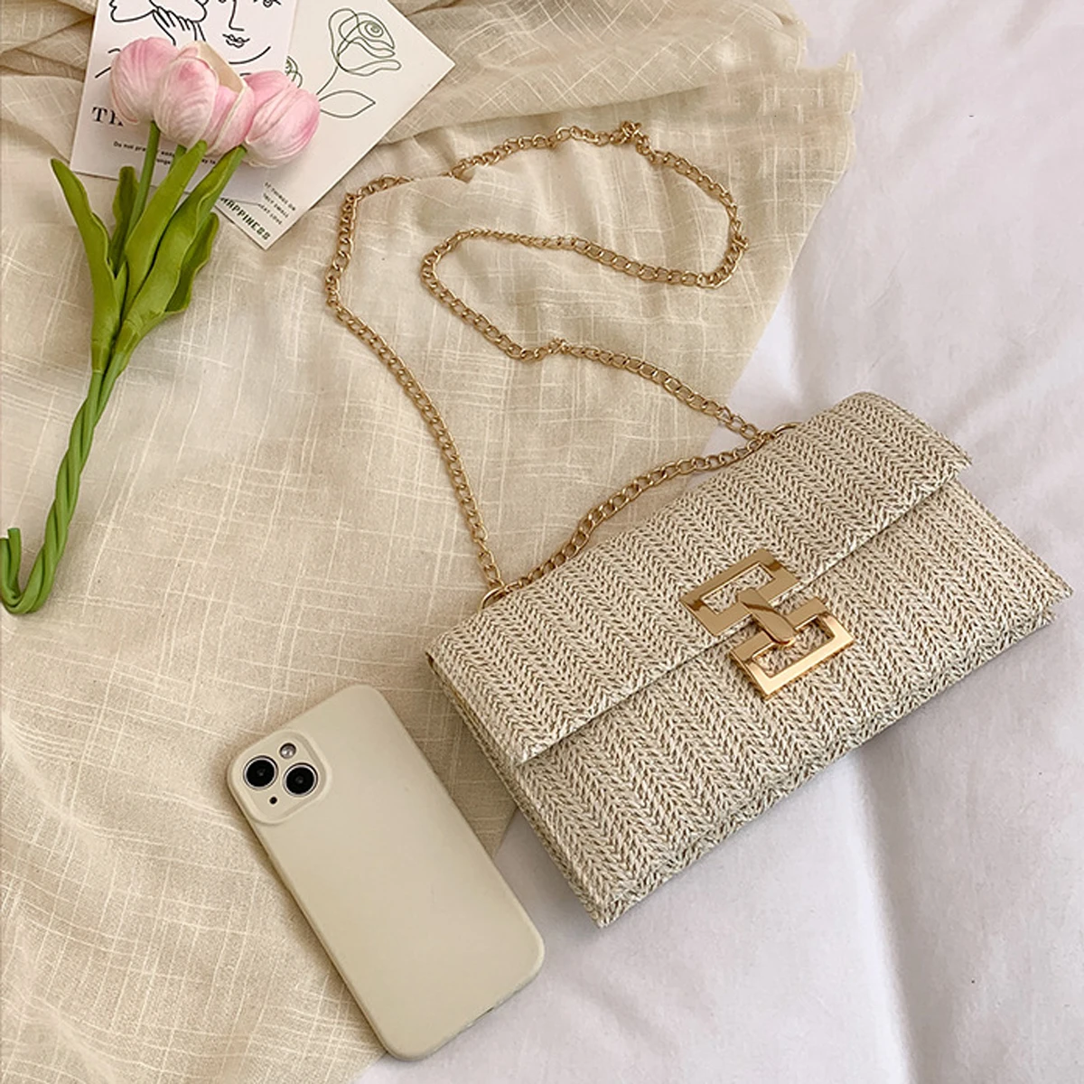 حقيبة يد نسائية منسوجة من العشب، محفظة متنقلة، حقيبة يد على الطراز البوهيمي للشاطئ الصيفي، محفظة منسوجة، ضرورية للفتيات في عطلة